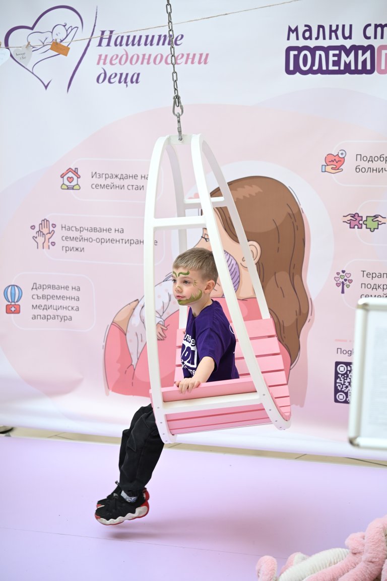 Музика, арт работилници, игри, танцови изпълнения и благотворителна томбола създадоха атмосфера на сплотеност и топлина, а в часовете между 11:00 и 14:00 ч. посетителите имаха възможност да разговарят със специалисти - неонатолози, психолози и експерти по ранно детско развитие от Фондацията и Център за детско развитие "Малки чудеса".