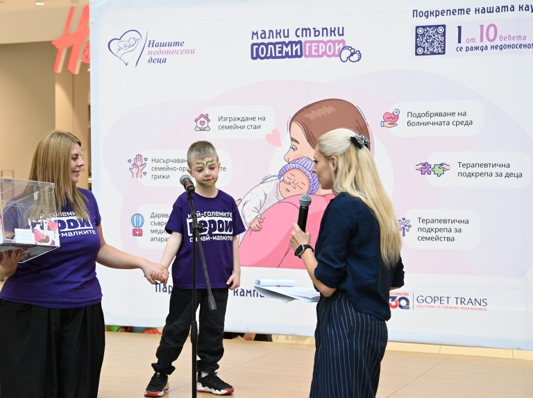 "Преждевременно родените деца са истински герои, а семействата им - пример за сила и постоянство. Тази кампания показа колко много хора застават зад каузата. Благодарим на всеки, който участва, подкрепи, дари или просто сподели посланието - защото вярваме, че дори най-малките стъпки могат да доведат до големи промени", сподели по време на събитието Моника Златанова, член на Управителния съвет на Фондация "Нашите недоносени деца".