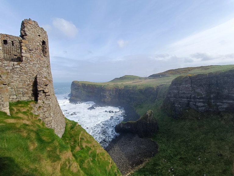 Маршрутът включваше драматичните руини на Dunluce Castle, кацнали върху скали над океана, сякаш всеки момент ще се откъснат и ще потънат: