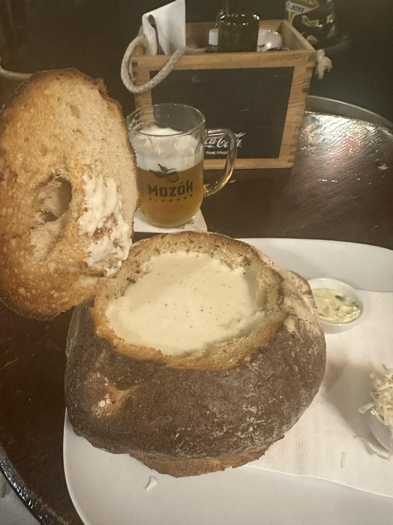 Най-вече се откроява тяхната чеснова крем супа, която ви сервират... в купа издълбана в хляб. Истинско блаженство за сетивата: