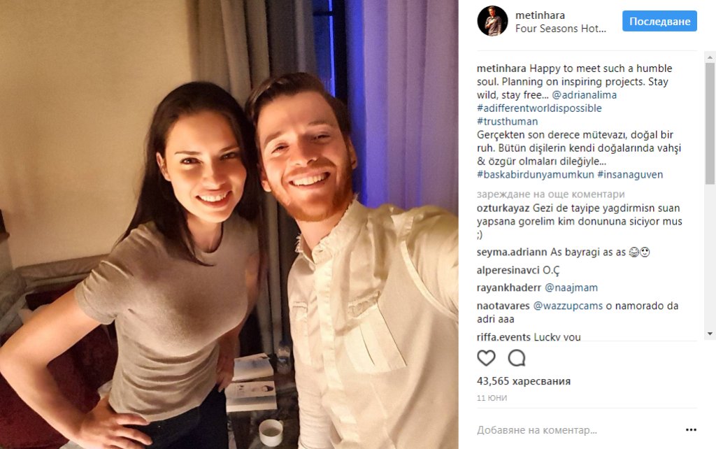 Папараци са успели да ги заснемат по врее на почивка в Бодрум. Прегръдките и целувките са се раздавали щедро, а Метин даже публикува снимка заедно с Лима в инстаграм профила си.