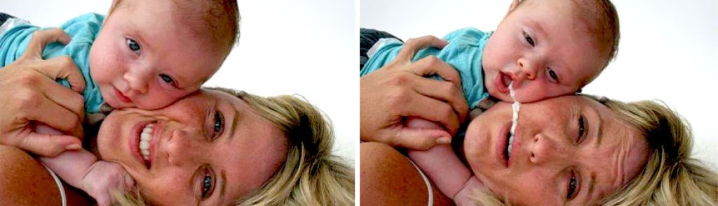 В нашата галерия ще се срещнете именно с този тип мъници - бебета, които с удоволствие ще ви устроят фотобомба, точно когато очаквате да сътворите най-милия и прекрасен кадър. Бебета, които без никакви спирачки и угризения ще ви украсят с малко повърнато или безцеремонно ще извършат някоя физиологична нужда върху вас.